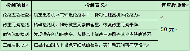 活动本着“人道、关爱、济困”的人文精神,以促进白癍患者恢复健康为目的。对此,主办方特别推出了涵盖所有白癍临床检测项目的50元普查套餐,同时针对相关优势诊疗项目给予一定比例的费用援助。而所有活动援助,将由中医药健康管理基金会和青少年白癍诊疗网联合提供,成都西部白癜风医院为单单指定普查机构。